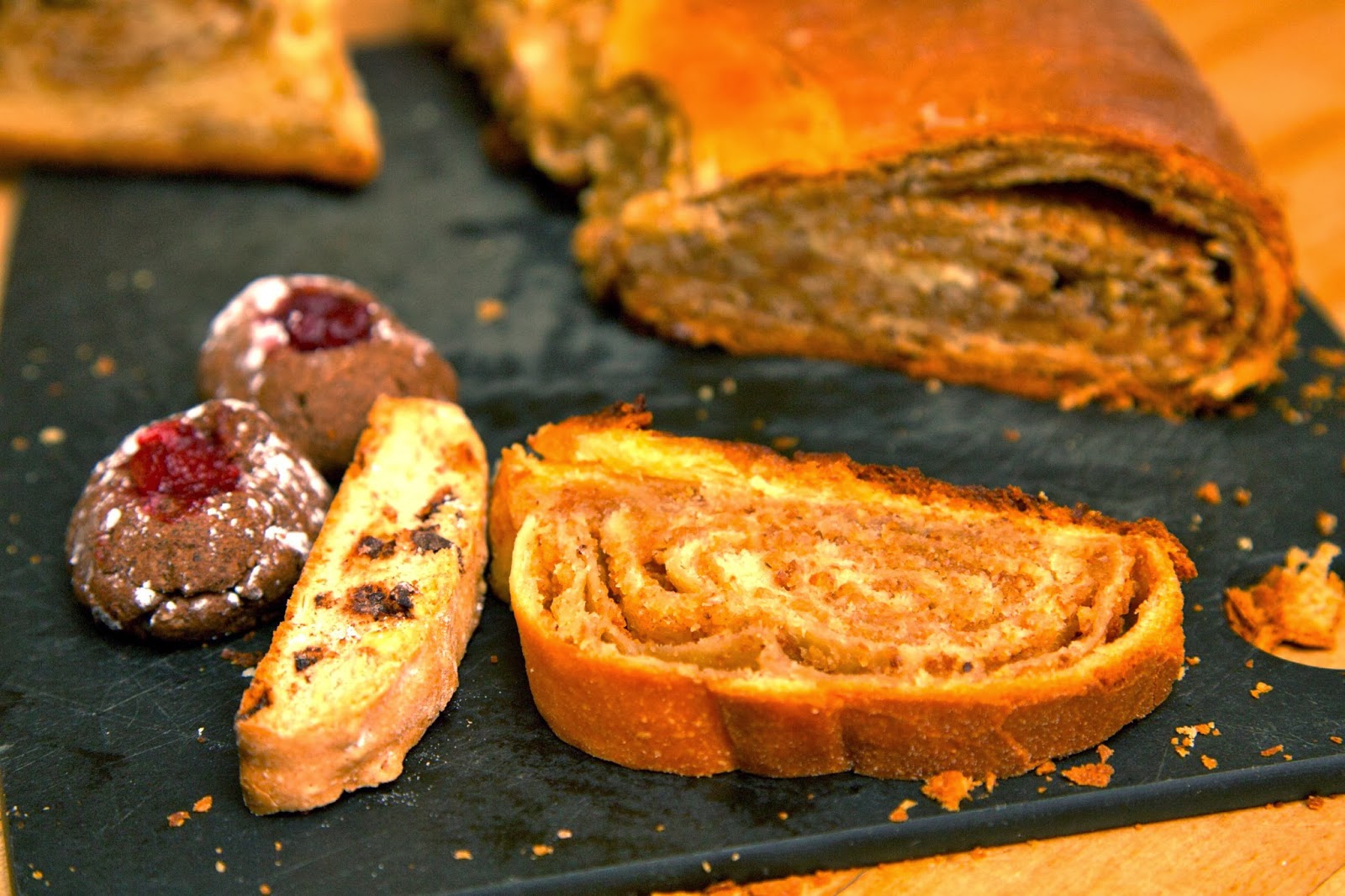 One major difference with domači prijatelj: they don't tend to receive a second baking in the oven. Most recipes direct the cook to slice the baked loaf and then let the individual pieces air-dry naturally, perhaps in a cool place. Biscotti, of course, are always given a second baking (the name translates as "twice-cooked"). This is usually the case with mandelbrot, as well. I did find a couple of domači prijatelj recipes that specified a second baking, so I felt on solid ground when I opted to add that second step.